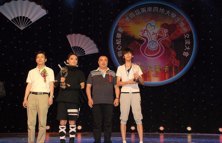 经过八个月来一轮轮精心筛选,共有25位来自两岸三地高校的大学生魔术师进入交流大会总决赛。经过紧张刺激的比拼,首都经济贸易大学朱亚男、东北大学大连艺术学院陈辉获得近景魔术比赛金奖。辽宁科技大学张泽龙、香港城市大学潘浩廷获得舞台魔术比赛金奖。来自辽宁科技大学张泽龙和辽宁建筑大学城市建设学院的陶秋晨分别获得“东莞市铭杨机械有限公司杯”和“博爱之星杯”大奖。